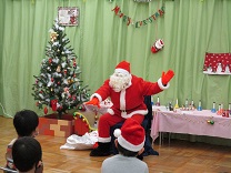12月23日、クリスマス・誕生会がありました。今回も密を避けるため、3部形式での開催となりました。誕生児紹介の後、クリスマスソングと共に女神が登場しキャンドルサービスをしました。次に、女神のピアノとハンドベルの協演で“星に願いを”の演奏がありました。最後は待ちに待ったサンタクロースの登場!大きいクラスの子どもたちの質問に答えてくれたり、年長児には手品を見せてくれ、一人ひとりにプレゼントを手渡してくれました。