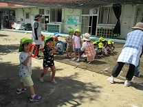 もぐさ台保育園では10月に運動会があります。運動会に向けての練習が始まり、毎日、一生懸命に走ったり、音楽に合わせて楽しく踊ったりする姿が見られるようになってきました。今日は4,5歳児が一緒にリレーの練習です。4歳児にとっては憧れのリレー、5歳児にとっては“負けないぞ!”という強い思いがこもったリレーは、毎年とても盛り上がります。さぁ、今年はどんな勝負になるかな?