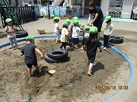 皆で川を作ってその中を歩いたり、感触を楽しみながら遊びます。