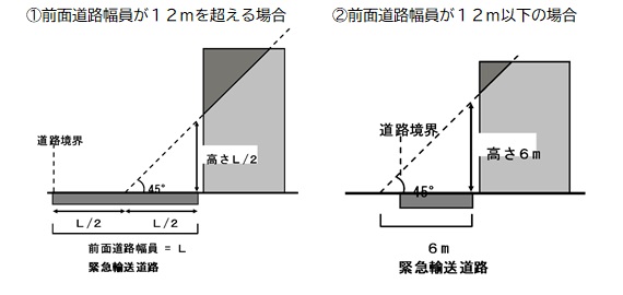 - 道路幅員の概ね2分の1以上の高さの建築物