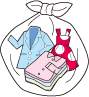 - まとめて不要なビニール袋等に入れて出してください。外から中が確認できない場合は、「古着・古布類」と書いて貼り紙する。